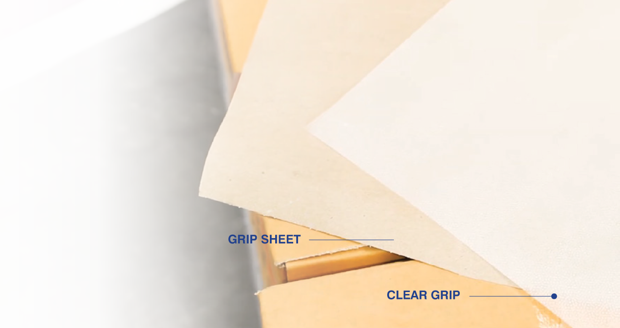 Grip Sheet and Clear Grip are used to stabilize loads on pallets, preventing the goods from shifing, sliding, or toppling during storage, loading, unloading, and transit.