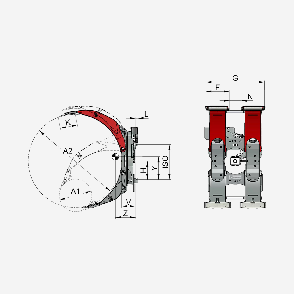 Rotating Roll Clamps of KAUP - also known as Paper roll clamps - can take up all kinds of roles carefully. This makes this attachment everywhere inalienable where the handling of the most different role types is essential.