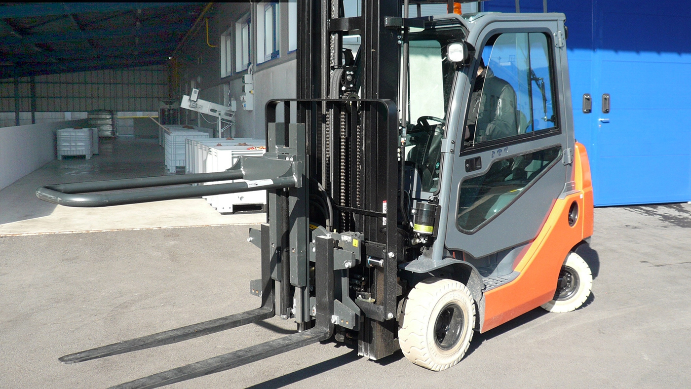 Attachment is operated hydraulically, i.e. supplied with oil from the forklift truck’s hydraulic system. Truck requires one additional hydraulic function.