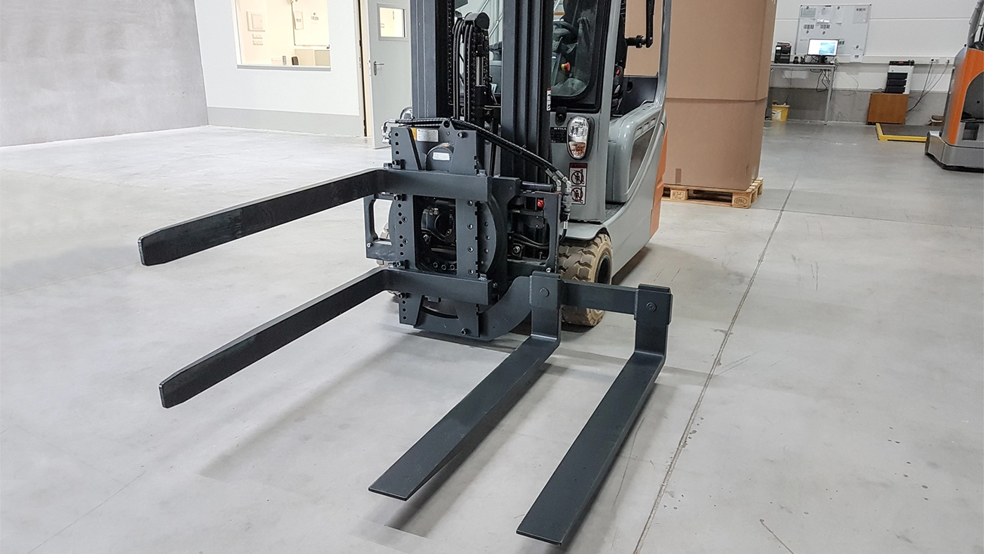 Phụ kiện này được vận hành bằng thủy lực, tức là được cung cấp dầu từ hệ thống thủy lực của xe nâng. Xe nâng cần thêm một chức năng thủy lực.